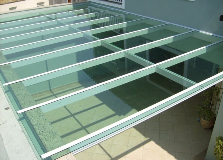Galeria de obras em vidro temperado e coberturas impressionantes.